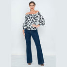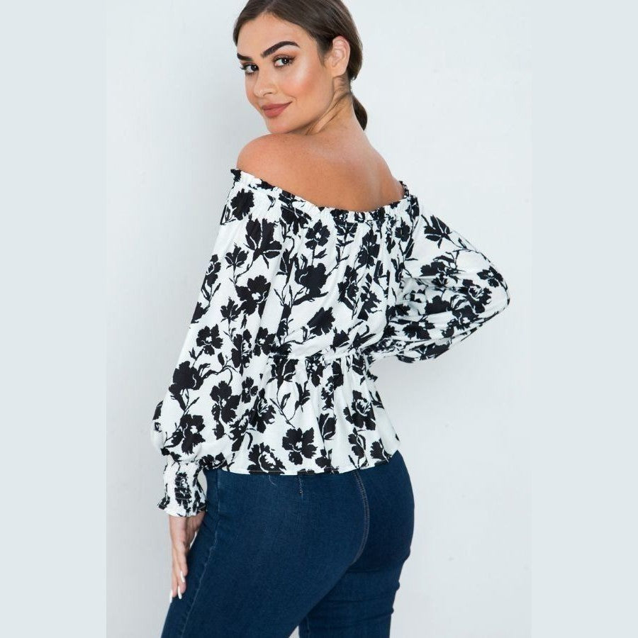 Perfect for casual outings, dinner dates, or any occasion where you want to showcase your chic and sophisticated sense of fashion with the Long Sleeves Off-Shoulder Neckline Printed Shirt.
