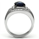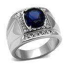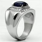 Magnifiques anneaux en verre synthétique bleu en acier inoxydable pour hommes
