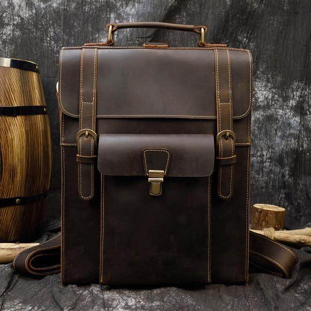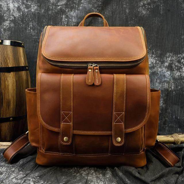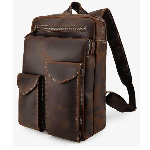 Sac à dos en cuir marron pour homme avec capacité pour ordinateur portable 16 pouces