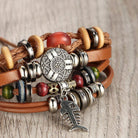 Cet ensemble de bracelets multicouches superbement fabriqués à la main est composé d'une combinaison de cuir PU de haute qualité et durable et de corde en coton ciré.