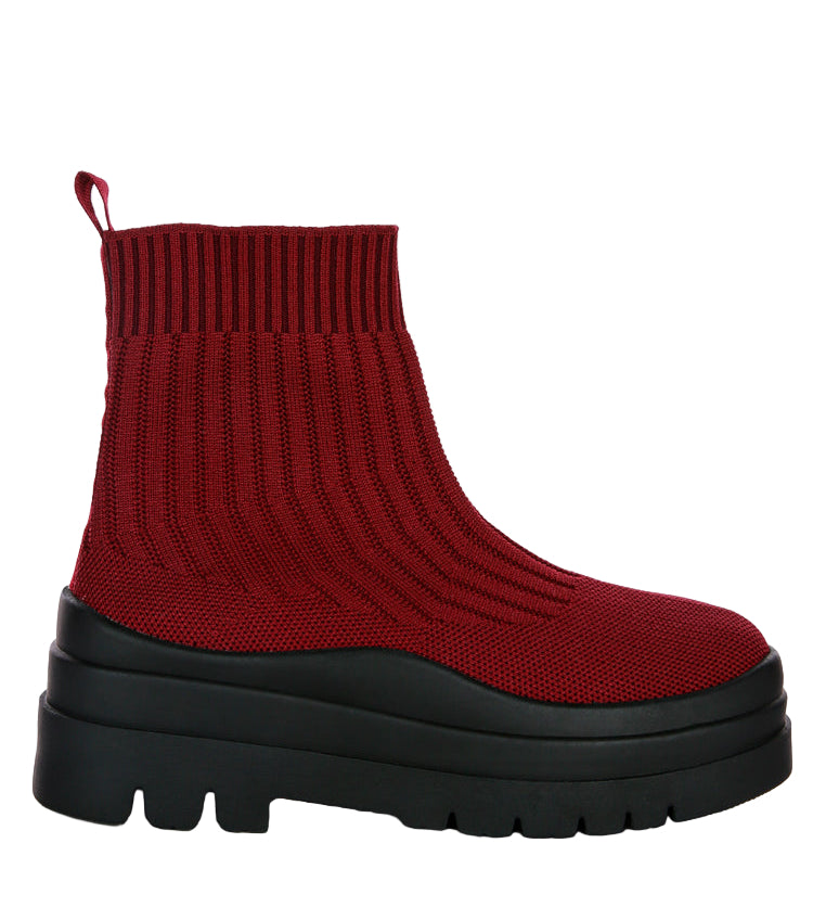 The knitted boots are an amalgam of retro and trendy with the classic knitted exterior and the quirky platform lug sole heel. The heeled ankle boots are comfortable with soft cushion insole and easy to wear with pull tab at the back.