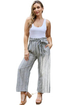 Ce pantalon allie sans effort confort, fonctionnalité et design avant-gardiste, ce qui en fait un ajout incontournable à toute garde-robe. Ce pantalon jupe-culotte offre une sensation douce et légère, assurant un confort toute la journée. La ceinture paperbag crée une silhouette flatteuse et ajoute une touche de style tendance à votre tenue. La ceinture est élastiquée et réglable, permettant un ajustement personnalisé qui accentue votre taille. Doté d'un imprimé à rayures classique, ce pantalon jupe-culotte apporte un attrait intemporel à votre ensemble. Les rayures verticales allongent les jambes, créant un effet visuellement attrayant. Le modèle à jambes larges offre un look décontracté et aéré, parfait pour les occasions décontractées et semi-formelles. Ces pantalons jupe-culotte peuvent être facilement habillés de manière habillée ou décontractée, ce qui en fait un choix polyvalent pour diverses occasions.