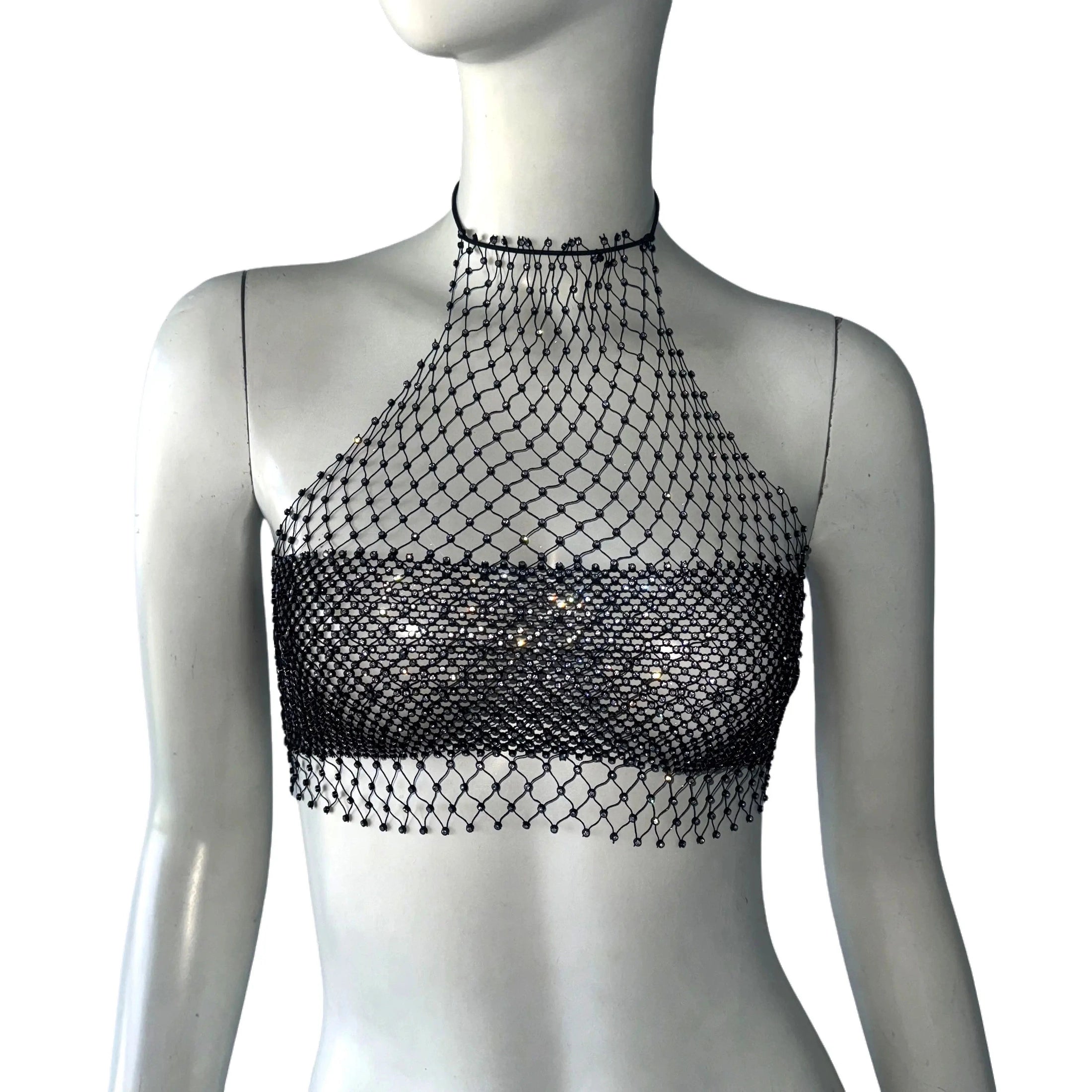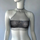 Step onto the dance floor and turn every head with the Sparkly Rhinestone Fishnet Halter Neck Tank Top. This piece from VacationGrabs sets a new standard in party style. The design features shimmering rhinestones woven through a soft mesh. The backless bandage clubwear tank hugs your silhouette and catches the light with every move.