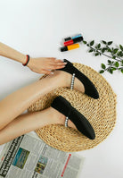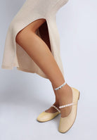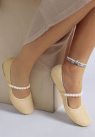 Each pair is lightweight. The sole is flexible and grips the ground well. This makes these flats a practical choice for travel or daily wear. The pearls on the strap set these flat shoes apart. They add a subtle shine to any outfit.