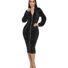 Step into the spotlight with our Midi 2 Way Zip Up Sequin Contrast Dress in Black. Add it to your cart now and get ready for a night of dazzling glamour!