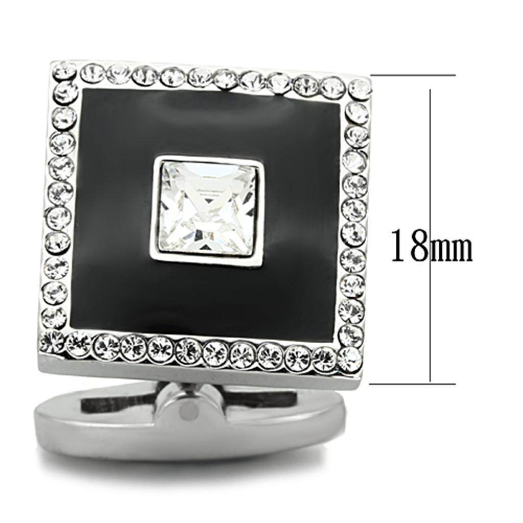 Boutons de manchette pour hommes - TK1242 - Bouton de manchette en acier inoxydable hautement poli (sans placage) avec cristal de qualité supérieure en clair