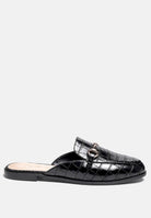 Croc Patterned Faux Leather Mules with metallic buckles on top are all trendy. The high-quality mules from London Rag are worth every dollar spent.