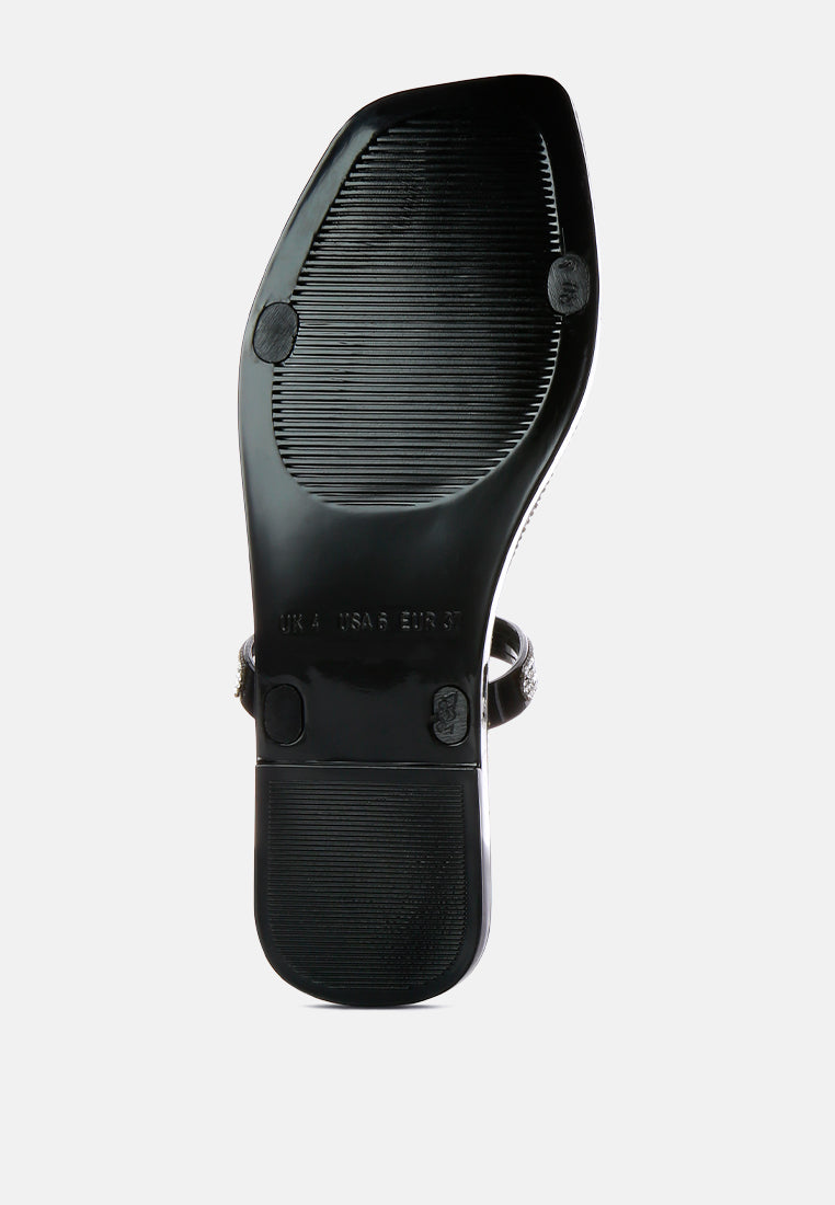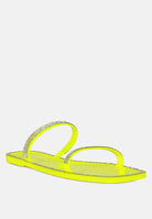 Water-resistant soft jelly flats with beautiful sparkling diamante detail studs along with the straps and edges. The casual, comfy streetwear flats look gorgeous on the feet.