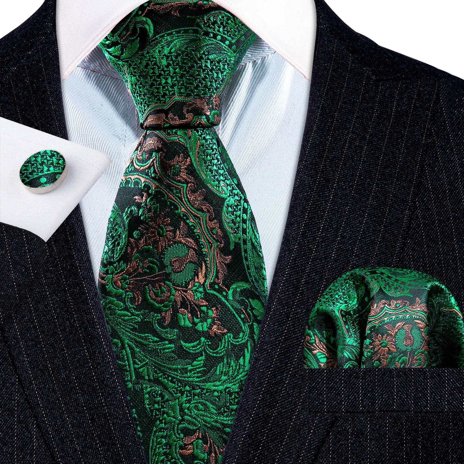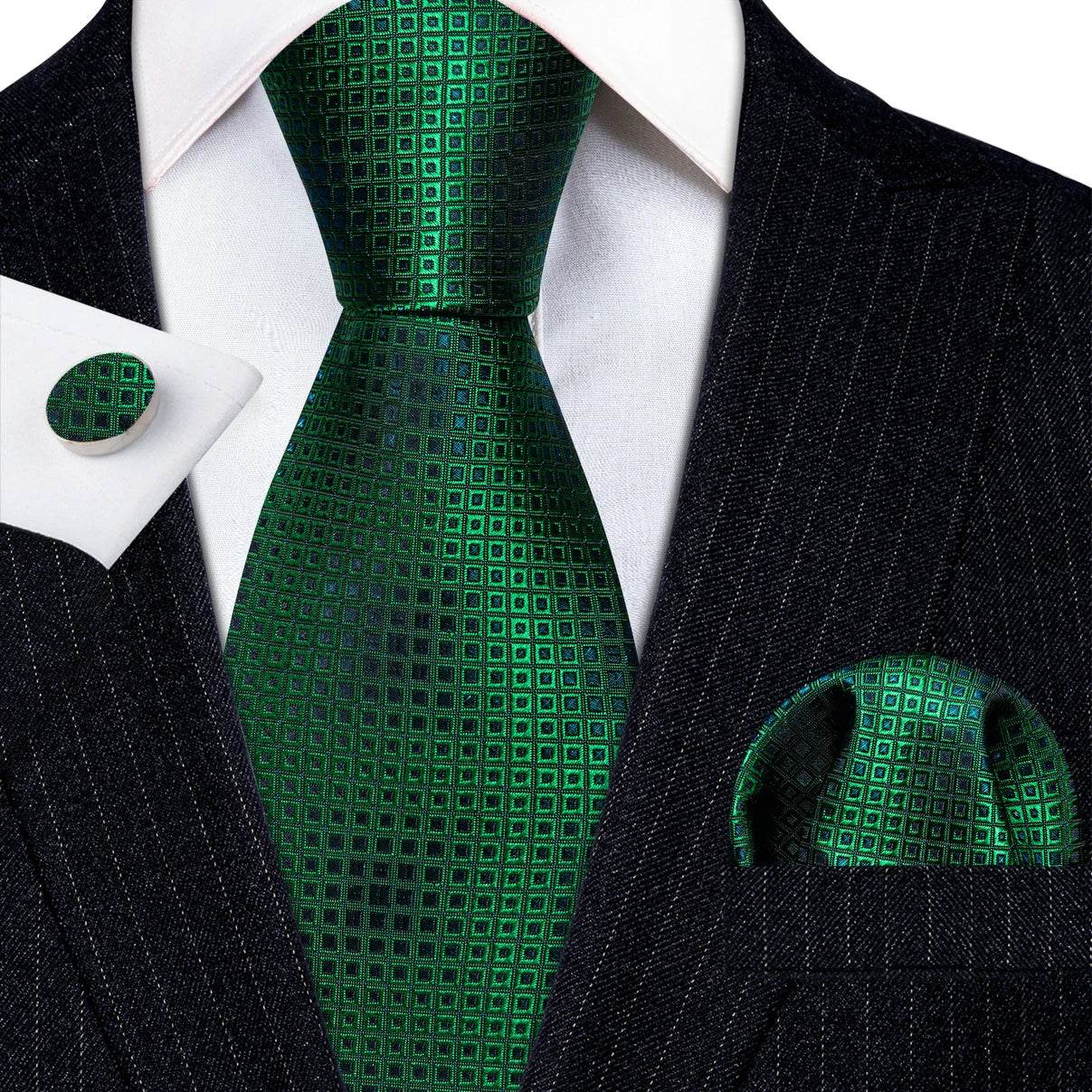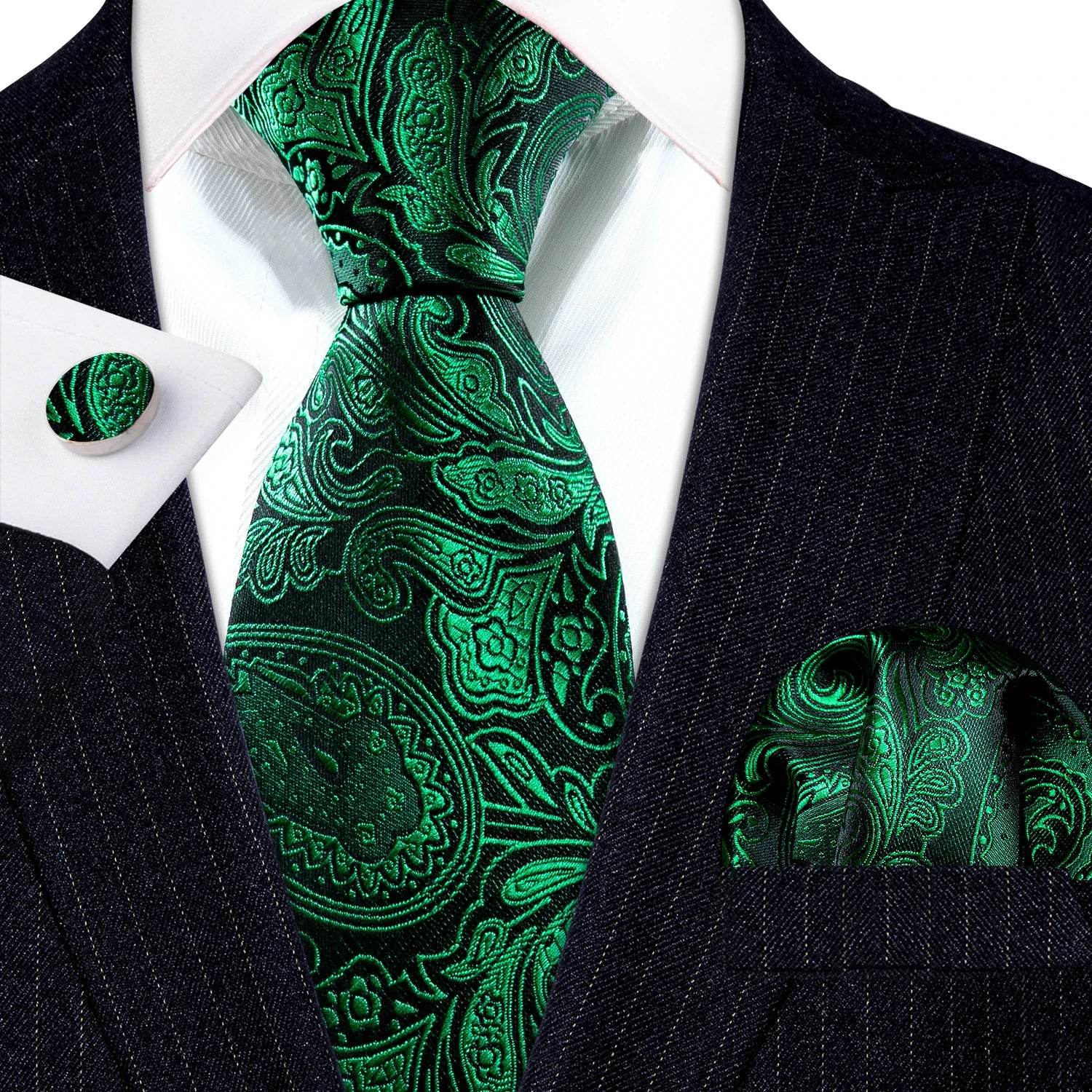 Green Silk Tie Set for Men: Multiple Shades Available