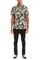 Chemise boutonnée à imprimé hawaïen noir et beige pour hommes