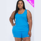Vacation Outfits for Women - Plus Solid Comfy Tank Top & Shorts Set