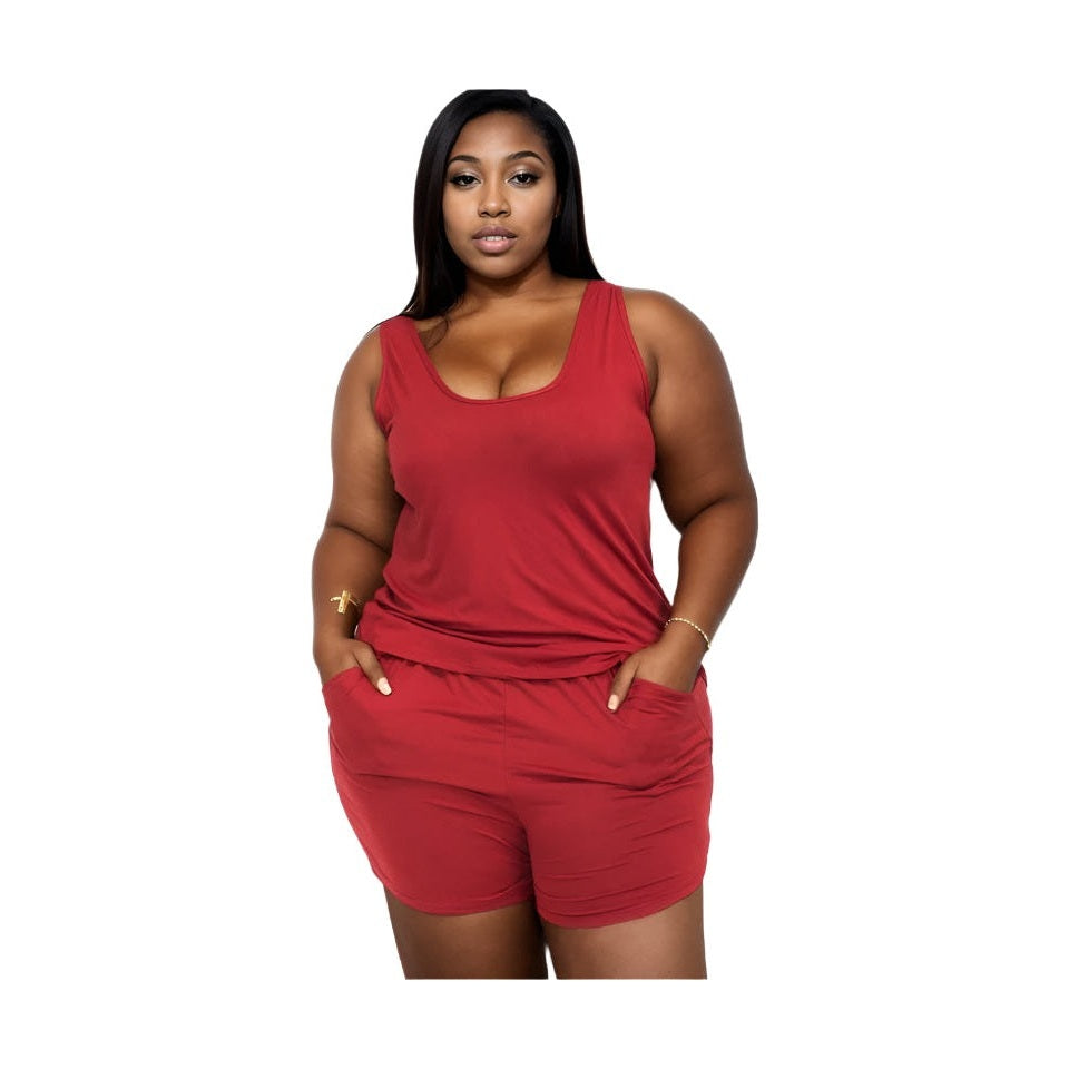 Designed with curvy figures in mind, this plus-size tank top and shorts set offers the ultimate combination of comfort and style. The breathable, lightweight fabric drapes beautifully, while the relaxed-fit tank and elastic-waist shorts ensure an effortless and flattering fit.
