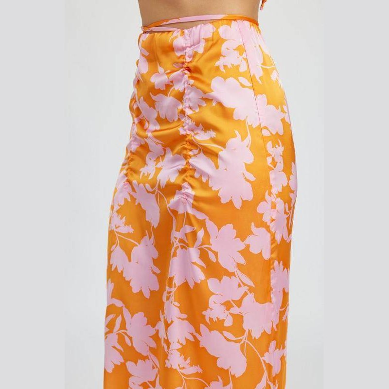 Jupe longue froncée avec cordon de serrage à la taille