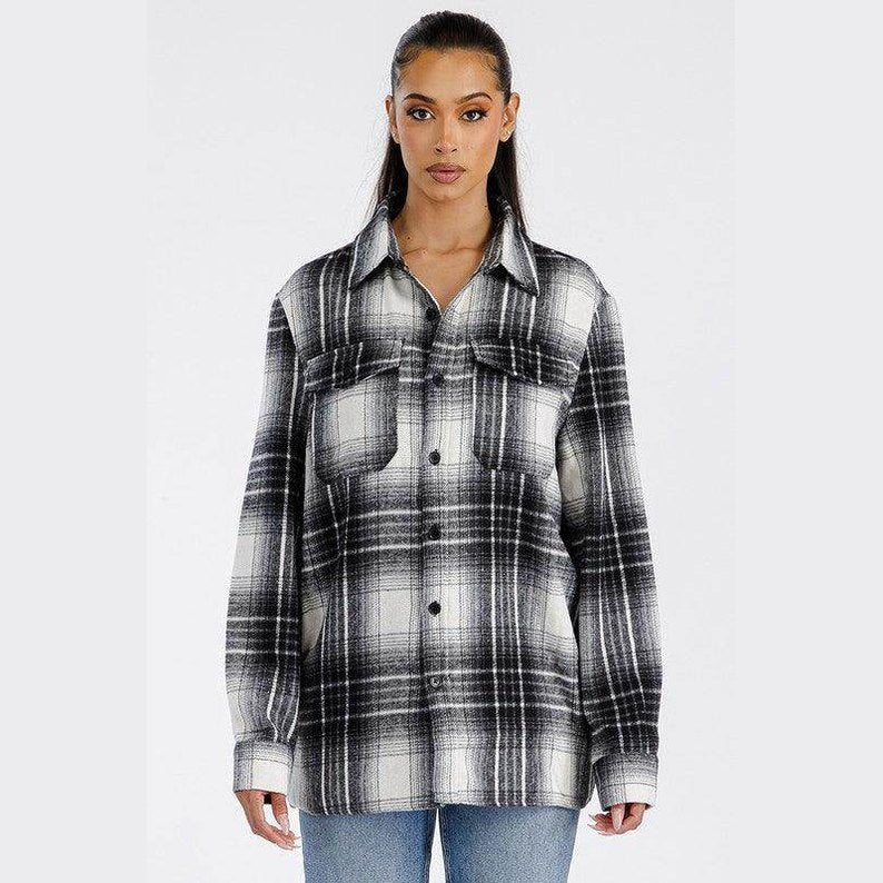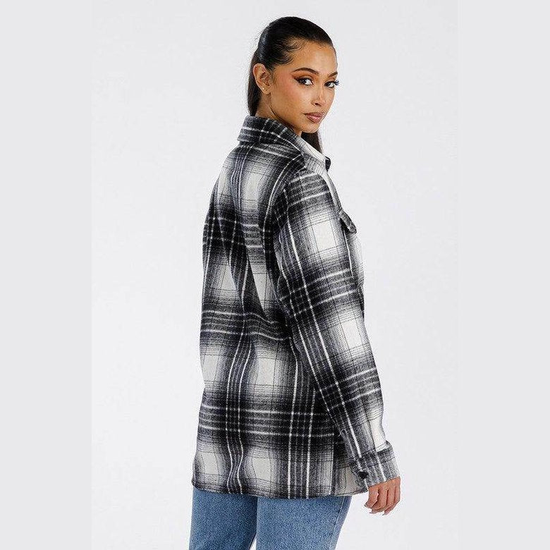 Veste surdimensionnée en flanelle douce Boyfriend noir et blanc