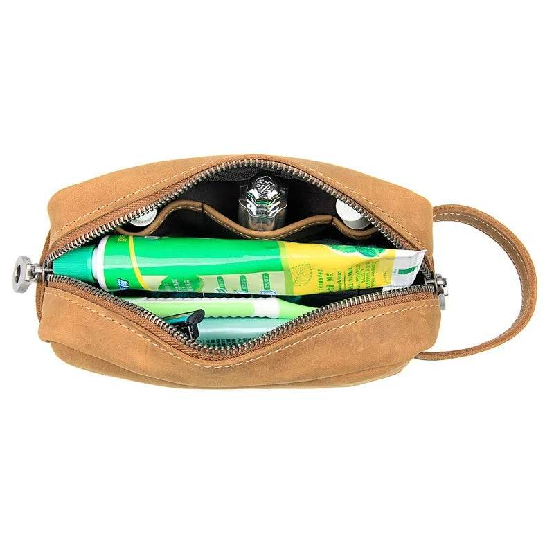 Genuine Leather Cosmetic Bag with Wrist Belt for Men & Women