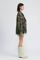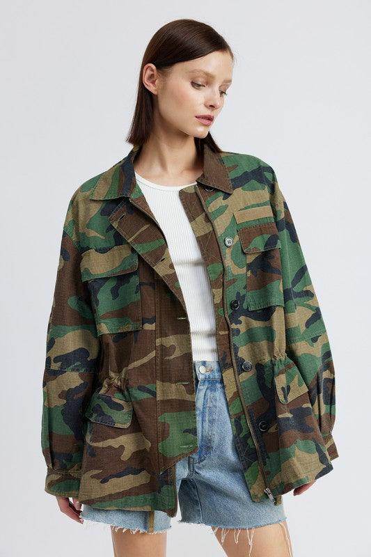 Faites une déclaration audacieuse avec cette veste camouflage surdimensionnée à fermeture éclair sur le devant pour femmes. Soyez le patron et démarquez-vous de la foule avec cette veste camouflage. Dotée d'une fermeture éclair sur le devant et d'une coupe oversize, cette veste est parfaite pour celles qui aiment prendre des risques et faire un choix de mode audacieux. Dominez le jeu de la mode avec cette pièce incontournable !
