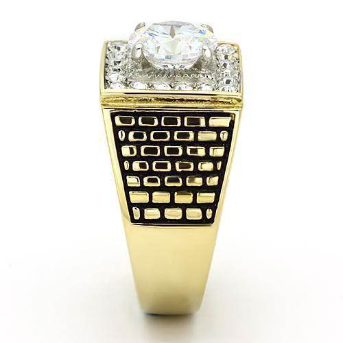 Homme, Bague, Acier inoxydable, Or IP bicolore (placage ionique), Zircone cubique, Transparent