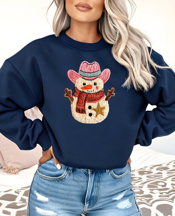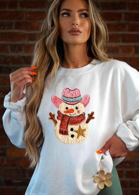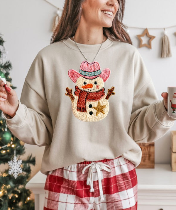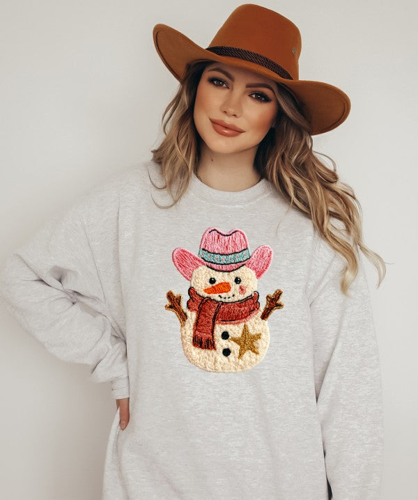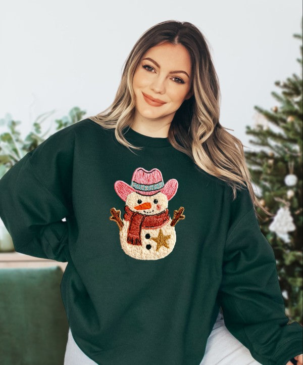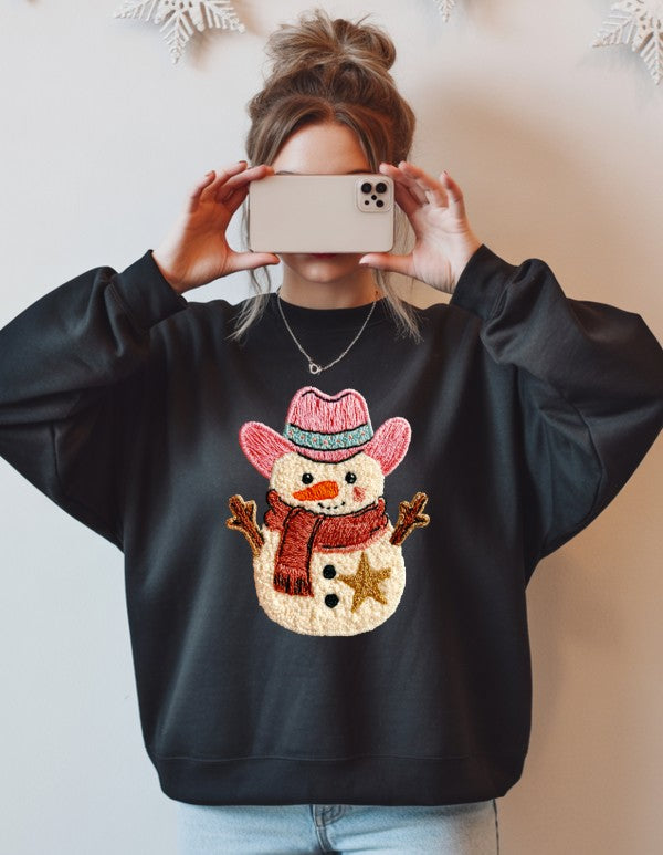 Latch Hook Cowboy Snowman Graphic Sweatshirt