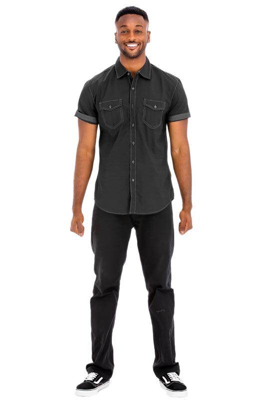 * Featuring Solid, Short Sleeve, Button Down, Two Buttoned Pockets on Chest, Neck Detail, LightWeight, Solid Color, Stretched and Casual Style