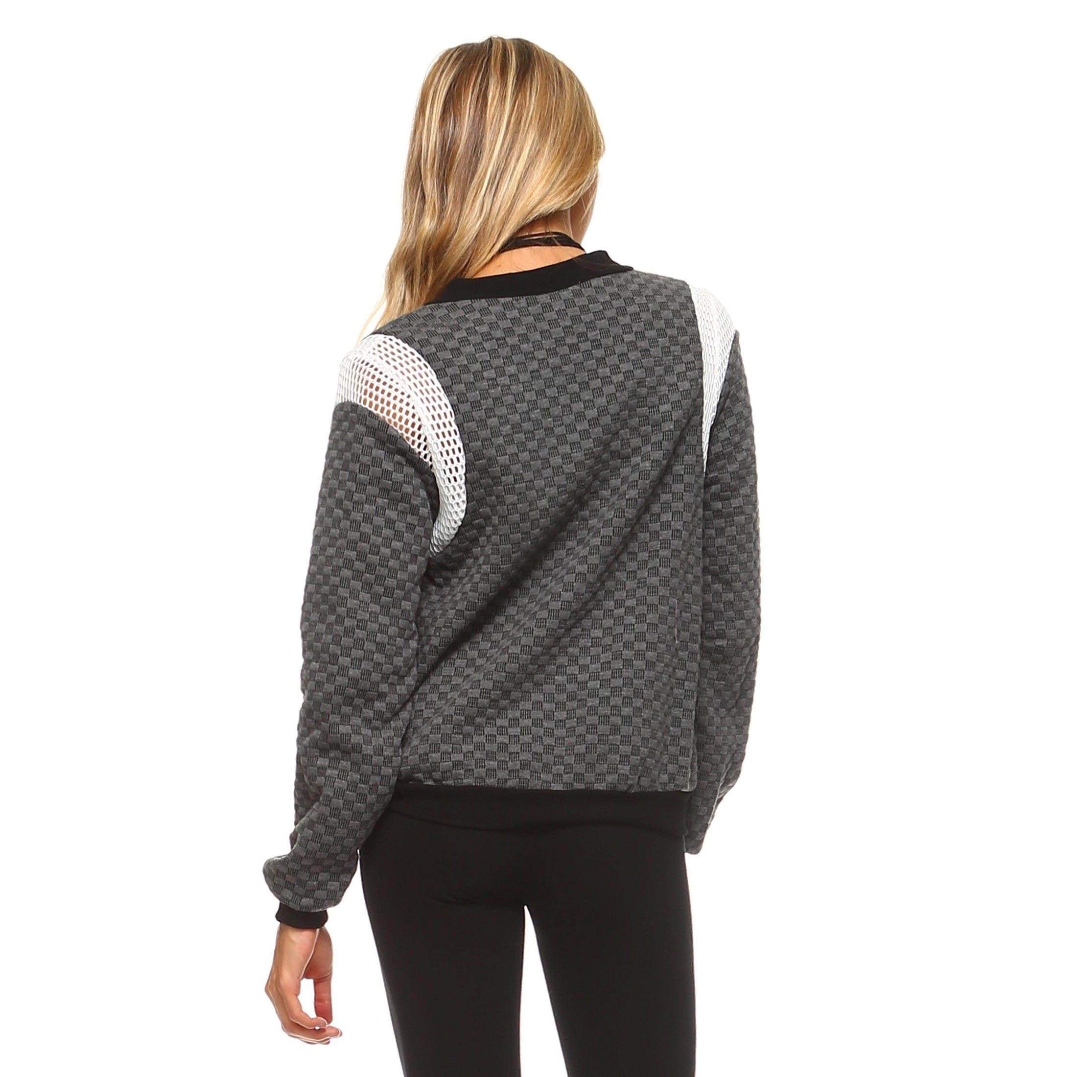 Learn more about our Women's Checkered Mesh Detail Bomber at VacationGrabs: