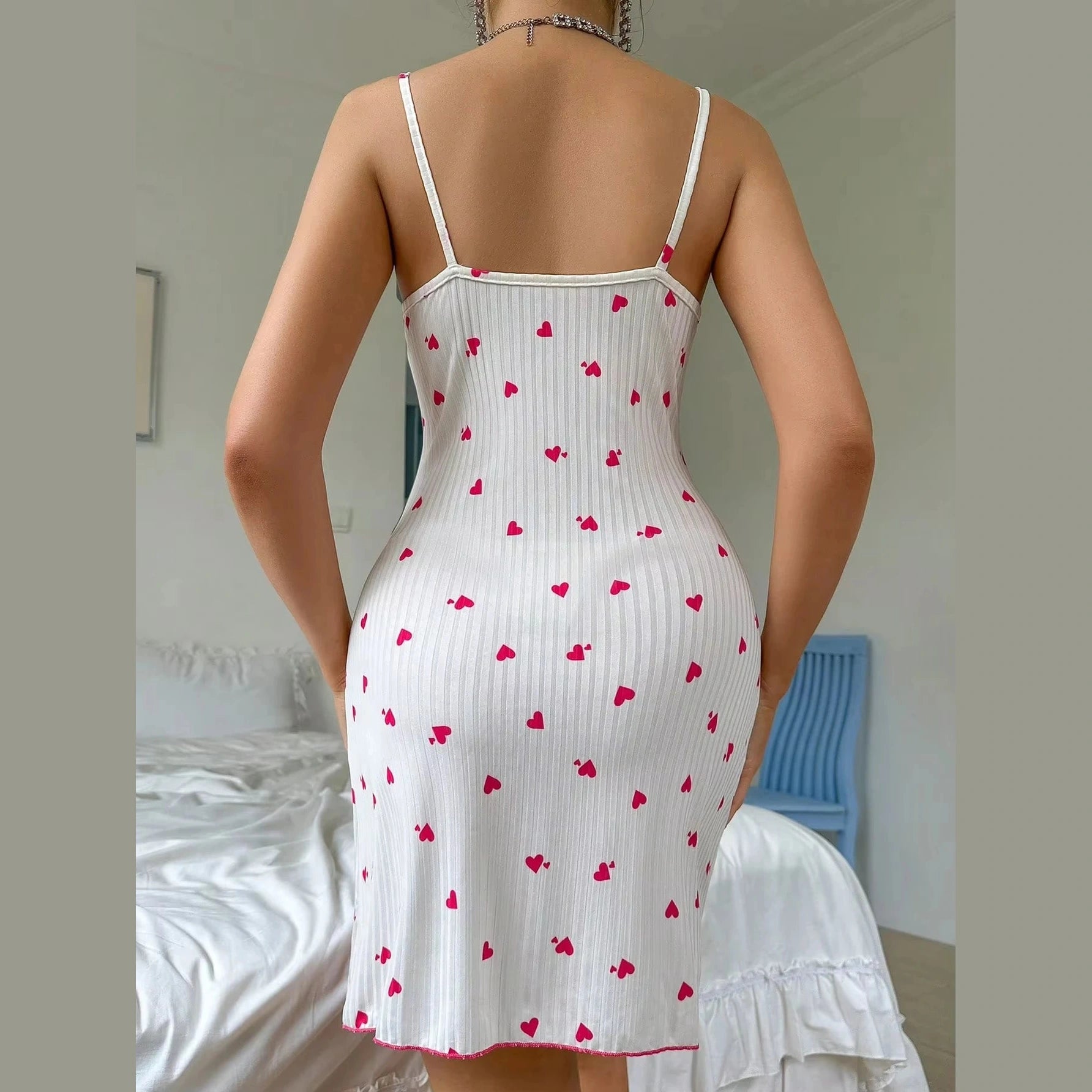 VacationGrabs Heart Print Sleep Dress for Ladies with Lace