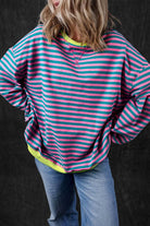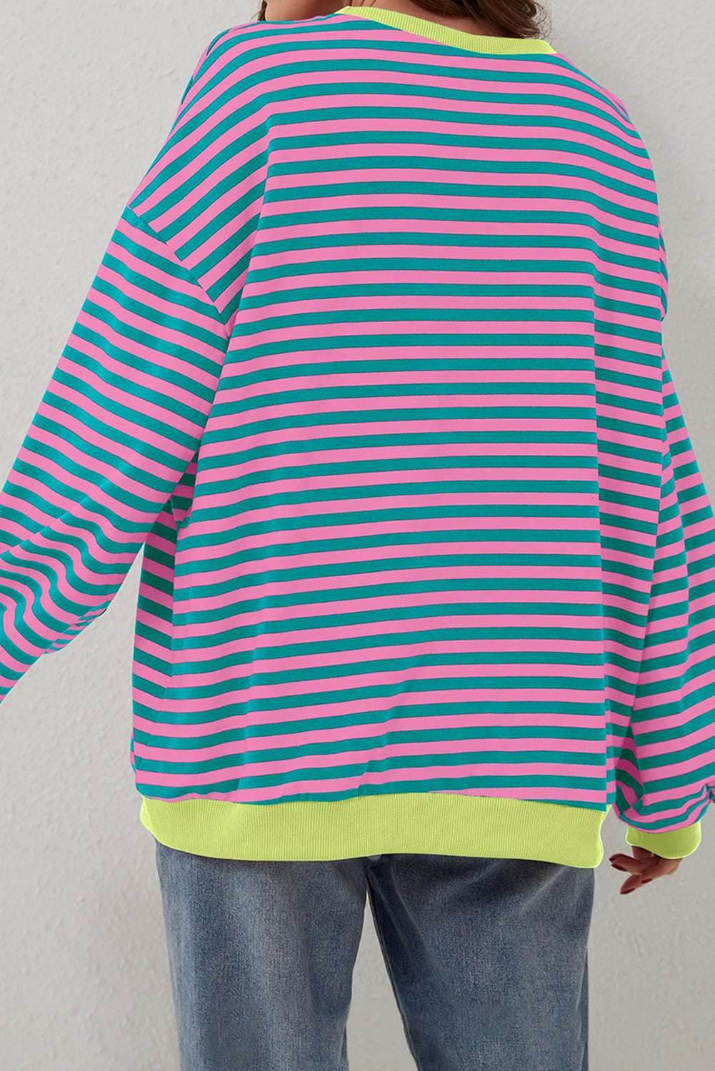 Green Stripe Oversized Contrast Trim Pullover Sweatshirt