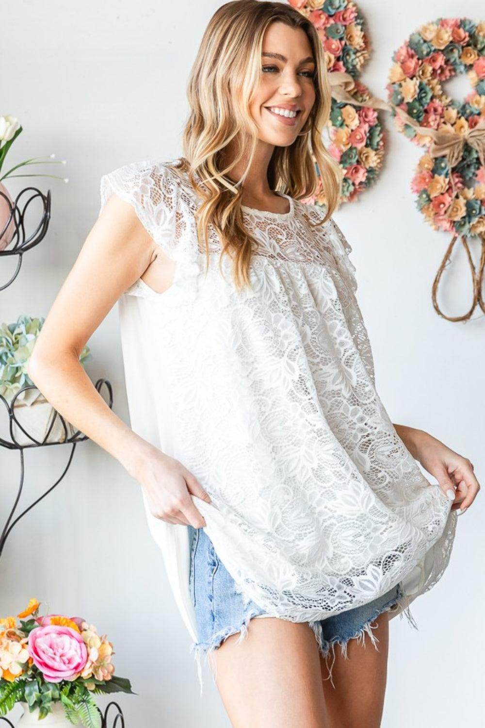 Learn more about our Heimish Full Size Round Neck Cap Sleeve Lace Top at VacationGrabs: