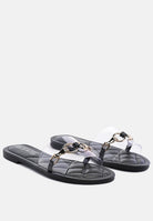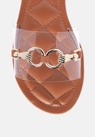 Pair of Clear strap slides with shiny metal buckle detail and quilted insole - looks aesthetically pleasing and is all in vogue.