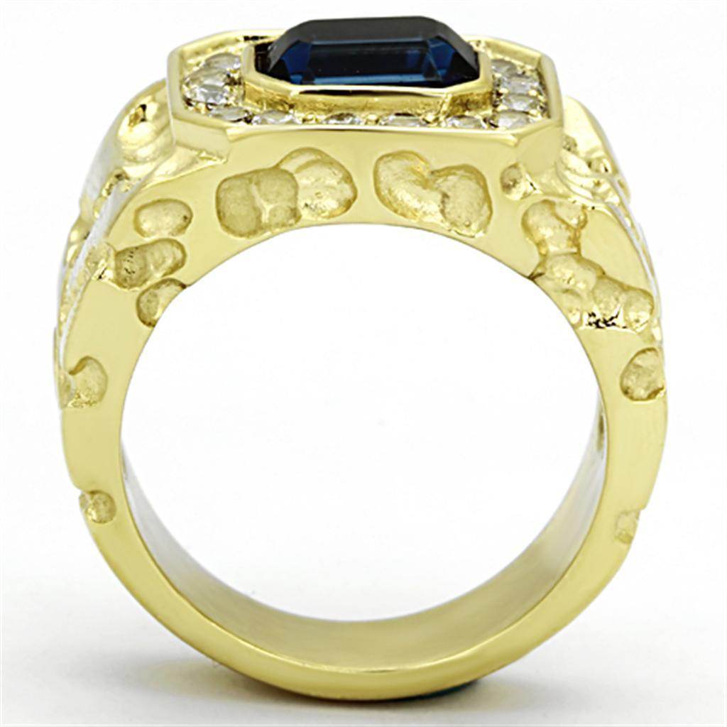 Anillos de cristal sintético de acero inoxidable para hombre con gema azul TK1192