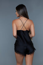 Indulge in elegance with the Lora Set — a satin cami and shorts duo designed for both comfort and allure. The top features a daring sheer mesh panel with polka dots, framed by delicate floral lace, creating a soft yet sultry finish. With its crisscross spaghetti straps and flattering square neckline, the cami delivers an effortlessly feminine touch. The matching shorts offer an elastic waistband and graceful lace trim, making them perfect for relaxed lounging or a romantic evening in.