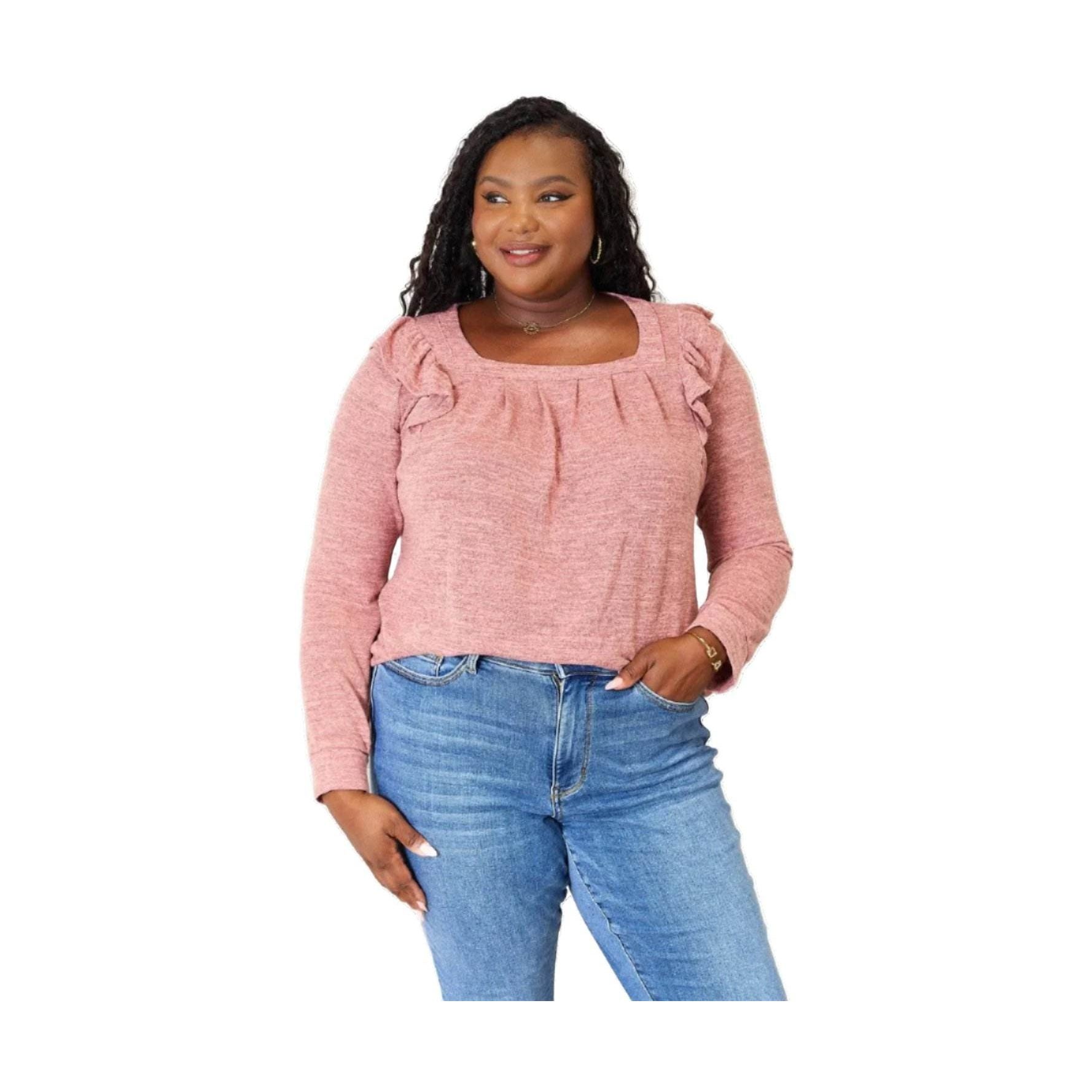 Learn more about our Double Take Square Neck Ruffle Shoulder Long Sleeve T-Shirt at VacationGrabs: