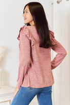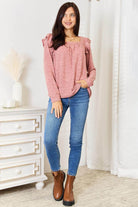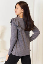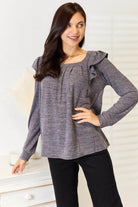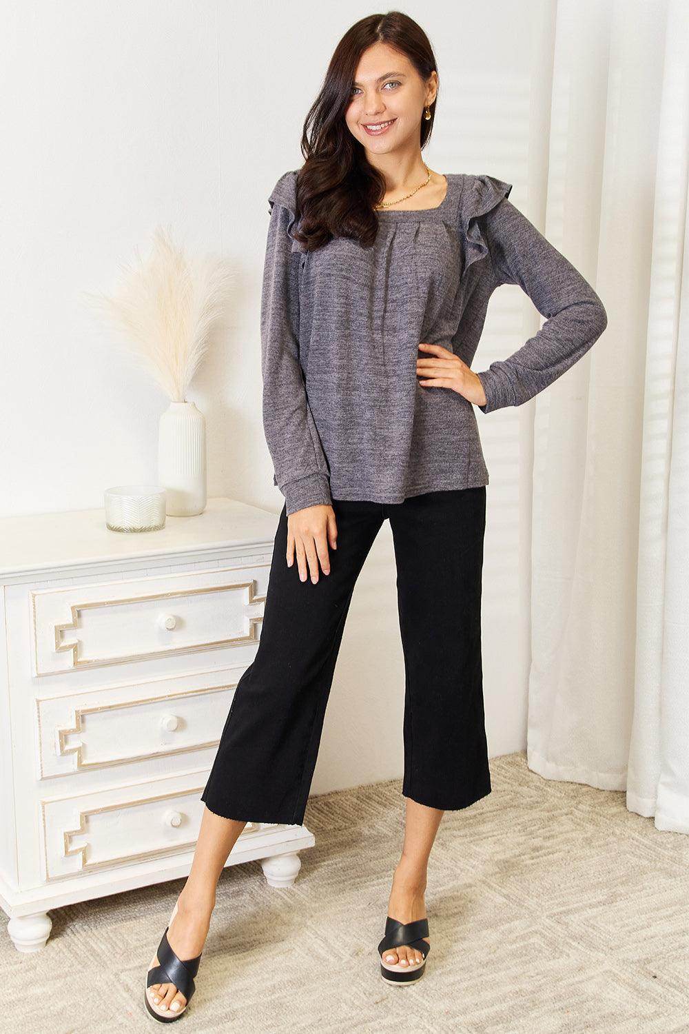 Double Take Square Neck Ruffle Shoulder Long Sleeve T-Shirt
