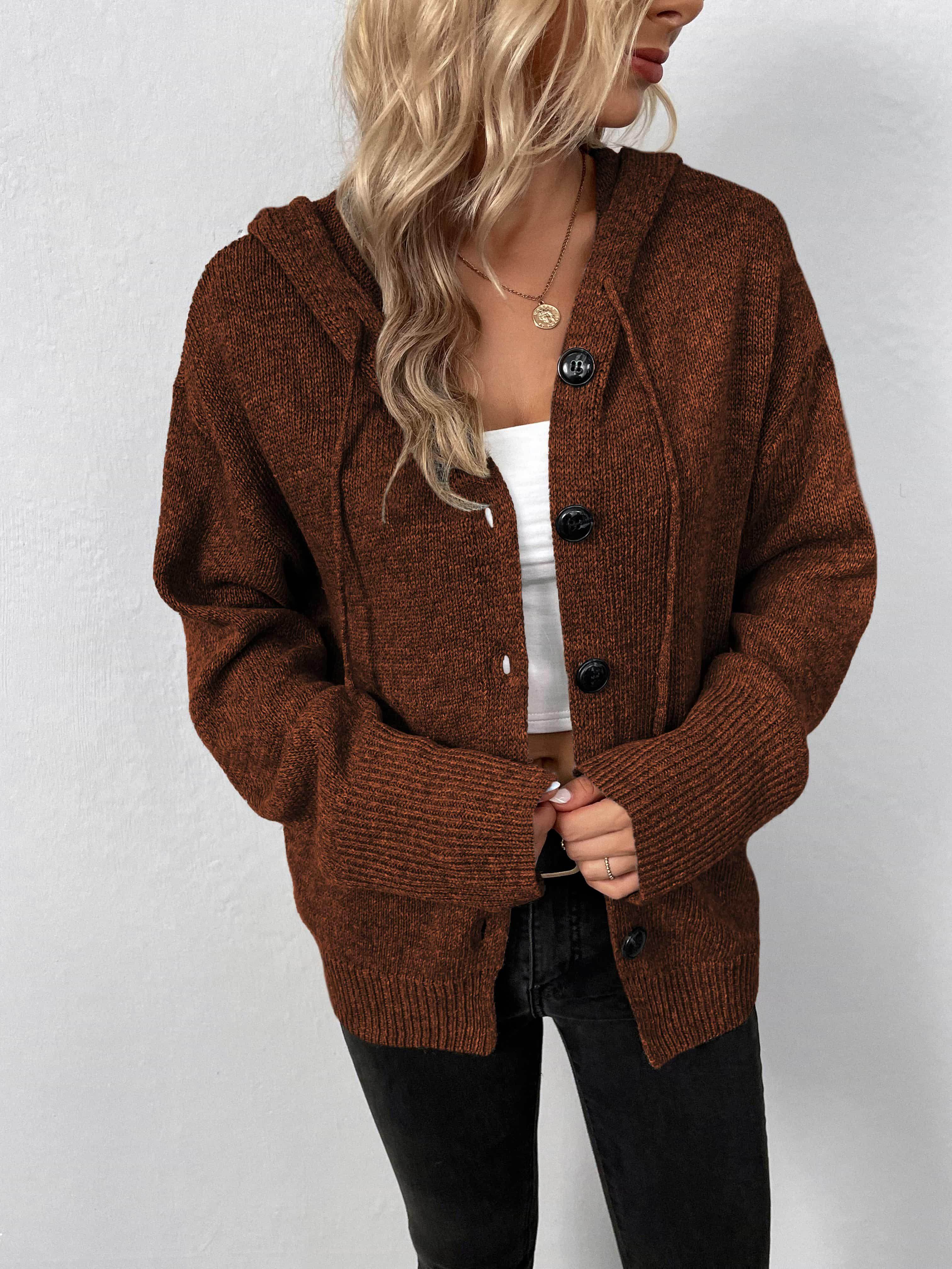 Designed for modern women, this casual hooded cardigan is both fashionable and functional. The roomy hood offers extra warmth and a touch of casual cool. Perfect for travel, its lightweight design ensures it fits neatly in your luggage without compromising on style.