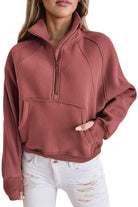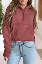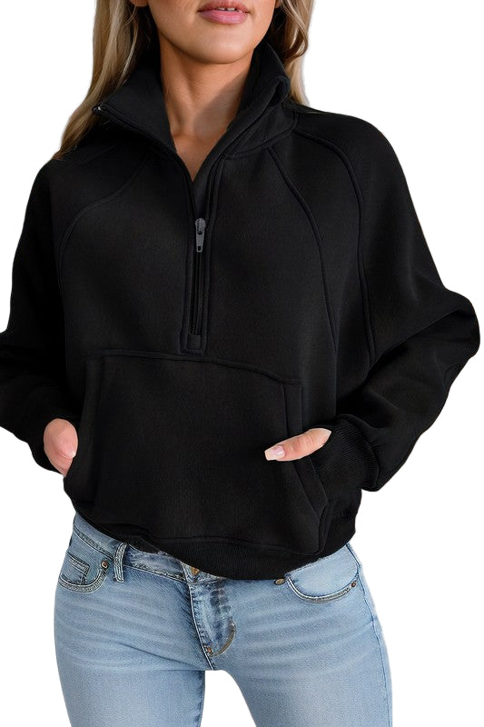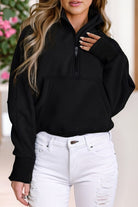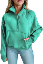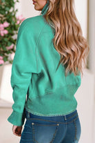 Stay cozy and stylish with the stand collar and ribbed thumbhole sleeves, providing both comfort and a trendy look. Ideal for layering or wearing on its own for a sleek and modern outfit.