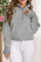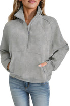 Elevate your casual style with the sweatshirt. The plain design offers versatility, while the zippered pocket adds a touch of functionality.