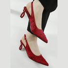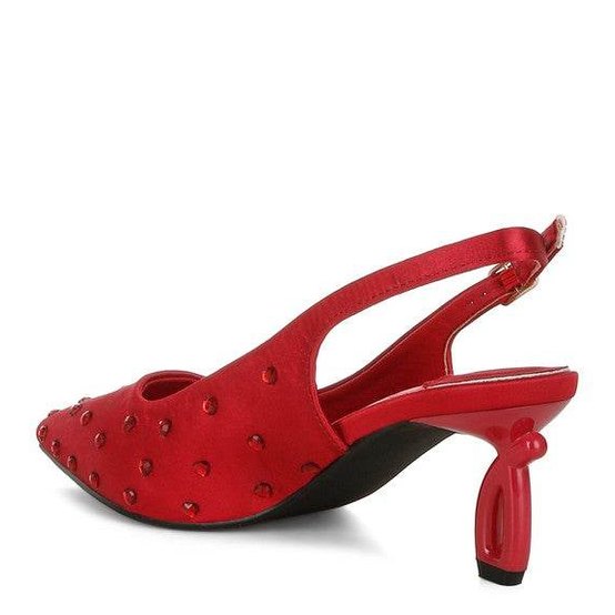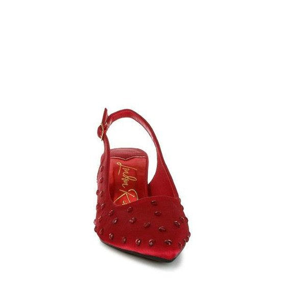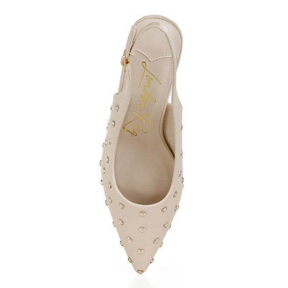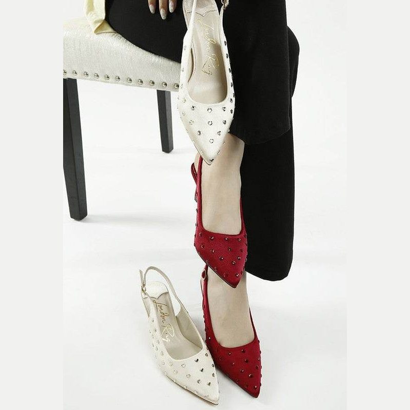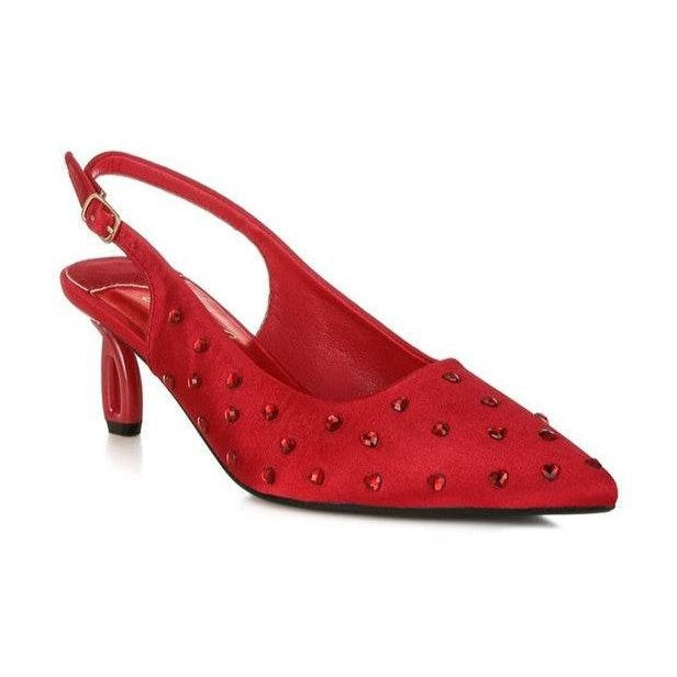 Dasavla Heart-Shaped Rhinestone Studded Slingbacks