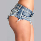 Turn up the heat with the Back Up Booty Shorts in Medium Wash — a flirty essential that brings attitude to your summer style. Designed with a low-rise waist and cheeky cut, these denim shorts are all about showing off your shape while keeping it effortlessly cool. The distressed finish and frayed hem give them an edgy, lived-in vibe, perfect for everything from beach days to music festivals. With just the right amount of stretch, they move with you while delivering a curve-hugging fit.