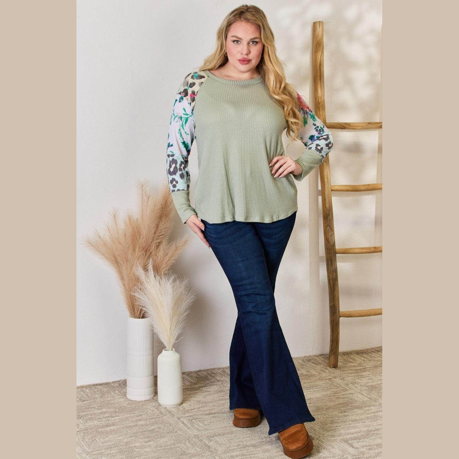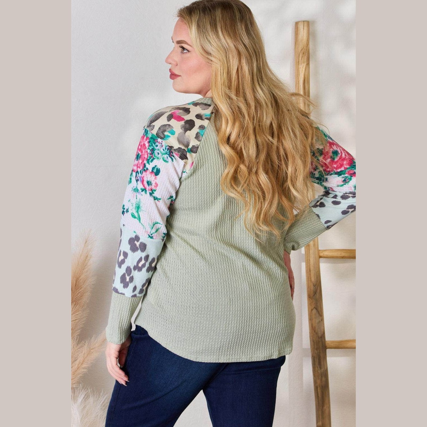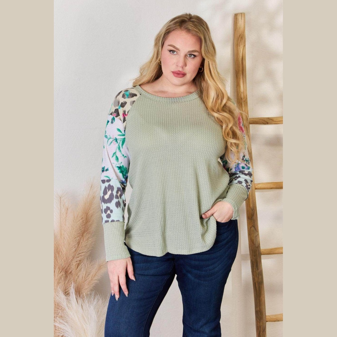 Learn more about our Hailey & Co Full Size Printed Round Neck Blouse at VacationGrabs: