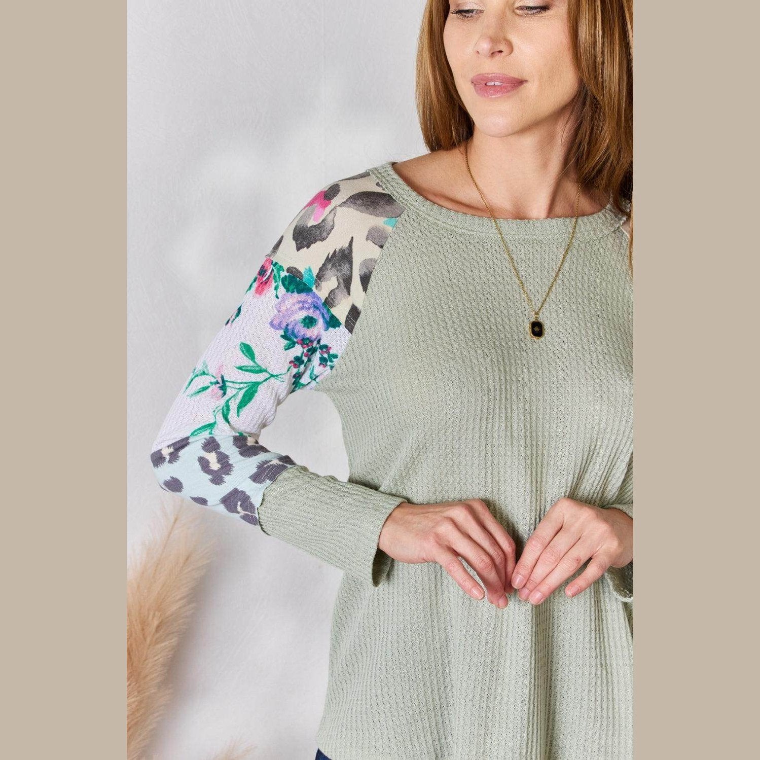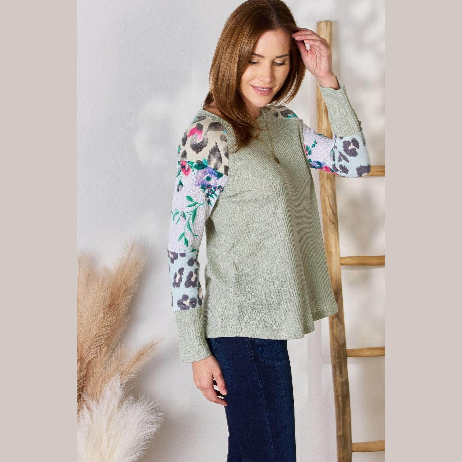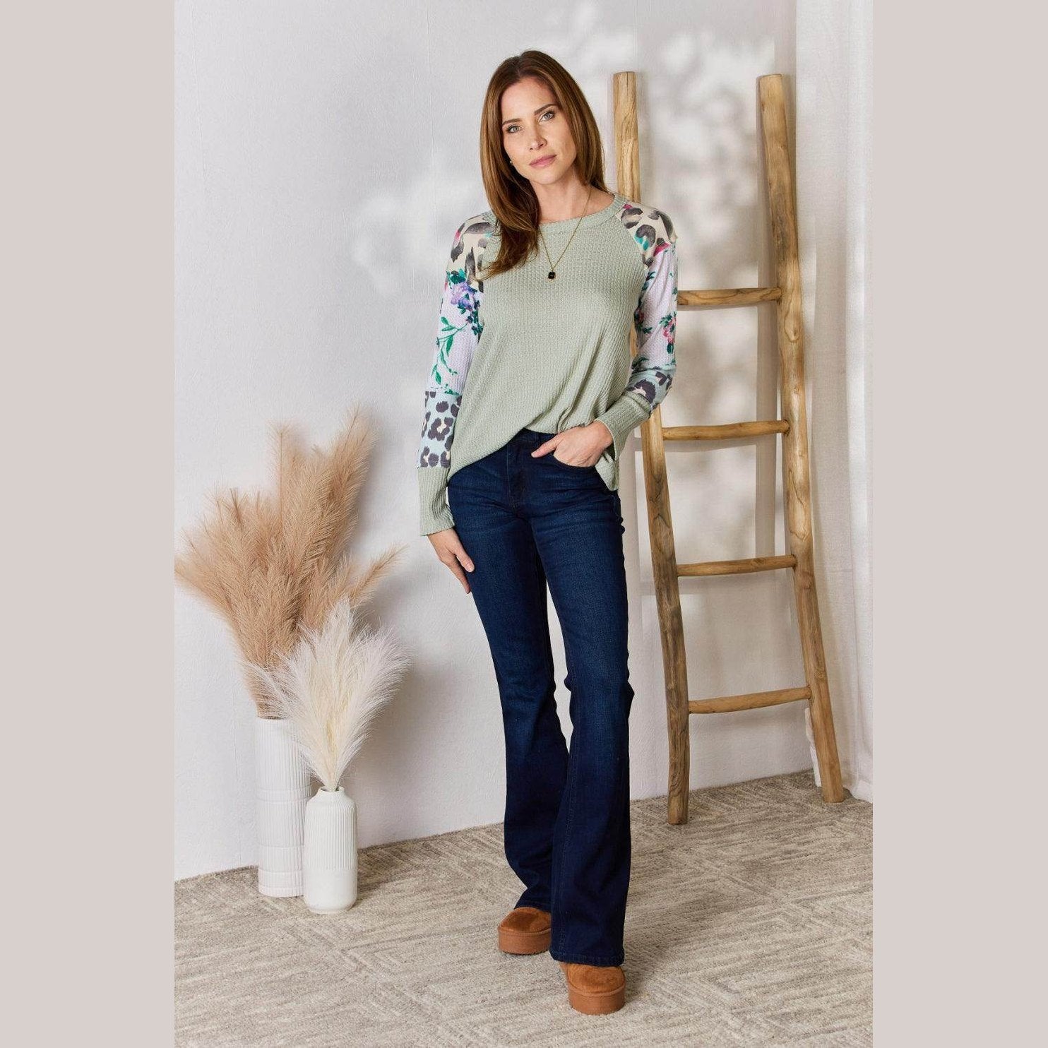Learn more about our Hailey & Co Full Size Printed Round Neck Blouse at VacationGrabs: