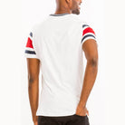 Elevate your vacation wardrobe with the Men's White Red Chest Tri Color Block Tshirt from VacationGrabs. This piece is not just a shirt; it's a statement. Its striking color block design makes it an essential for any stylish wardrobe. Crafted from high-quality materials, this color block summer shirt men will keep you comfortable and cool during those sunny days.