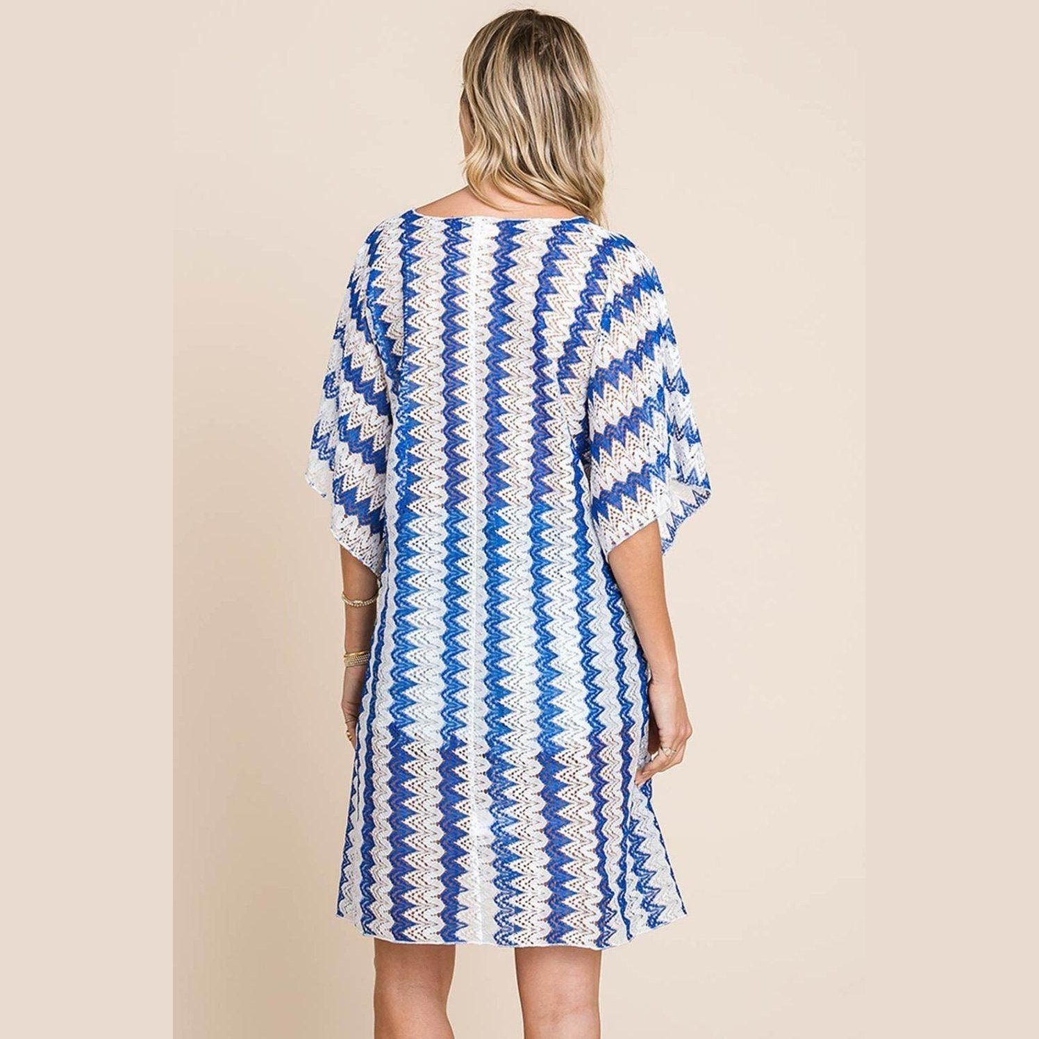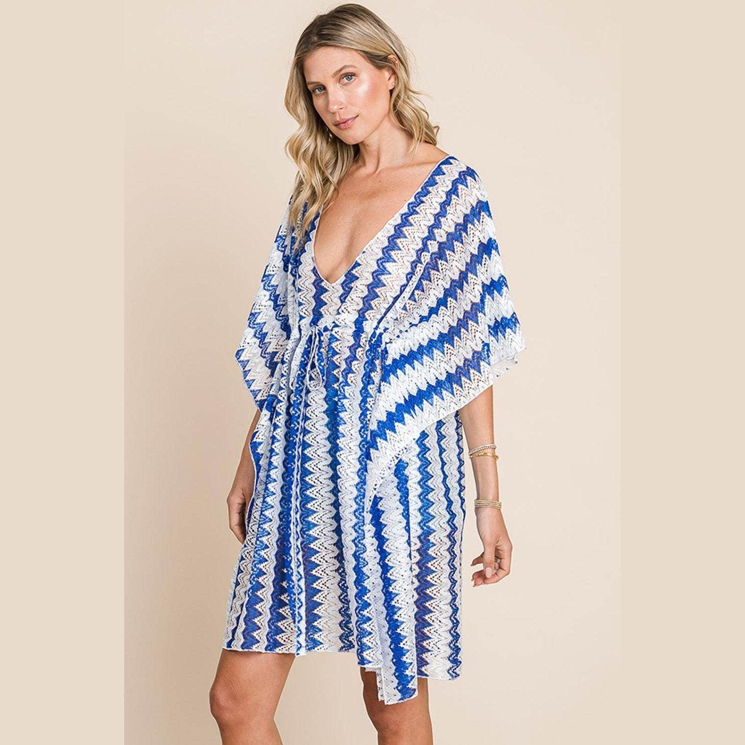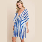 The Tied Striped Plunge Half Sleeve Cover-Up is a stylish and versatile piece that adds a touch of sophistication to your summer wardrobe. Featuring a classic striped pattern, a plunging neckline, and chic tied details, this cover-up exudes elegance and charm. The half sleeves provide coverage while keeping you cool on warm days. Perfect for layering over swimsuits at the beach or pool, this cover-up can also be paired with shorts or a skirt for a trendy summer outfit. Whether you're lounging by the water or strolling along the boardwalk, the Tied Striped Plunge Half Sleeve Cover-Up is a chic and effortless choice that will elevate your beach look with flair.