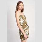The bustier mini dress features a flattering waist tie. This design element enhances your silhouette gracefully. The mini length brings a playful touch, perfect for beachside dinners or exploring vibrant city streets.