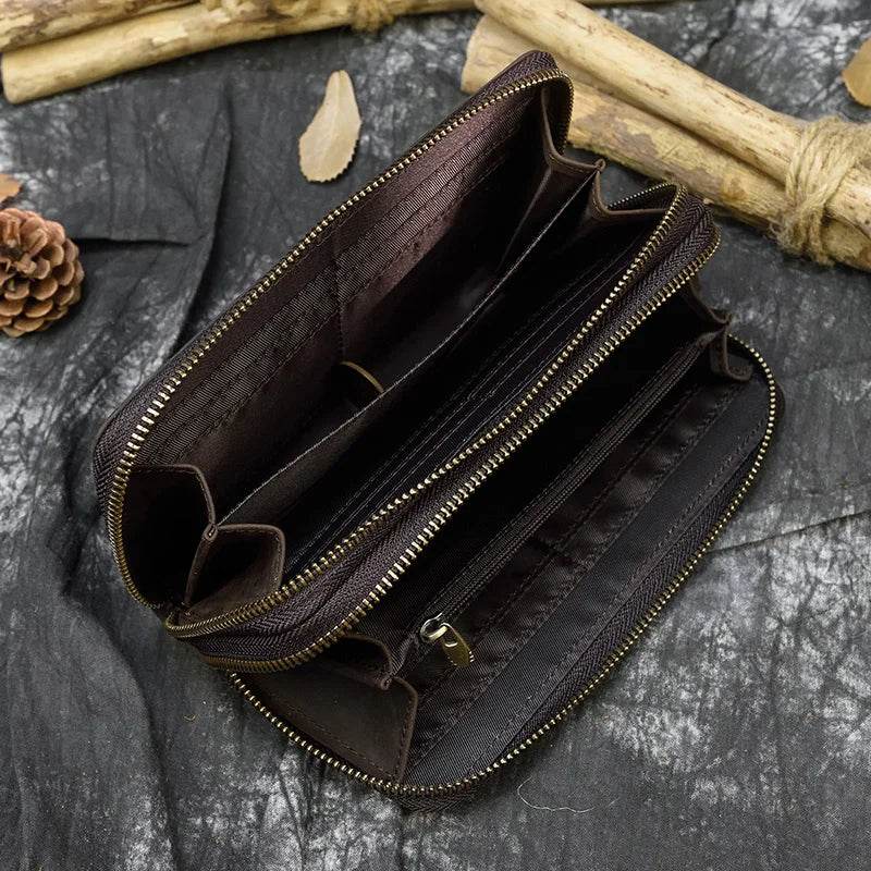 Retro Crazy Horse Leather Double Zipper Wallet for Men & Women