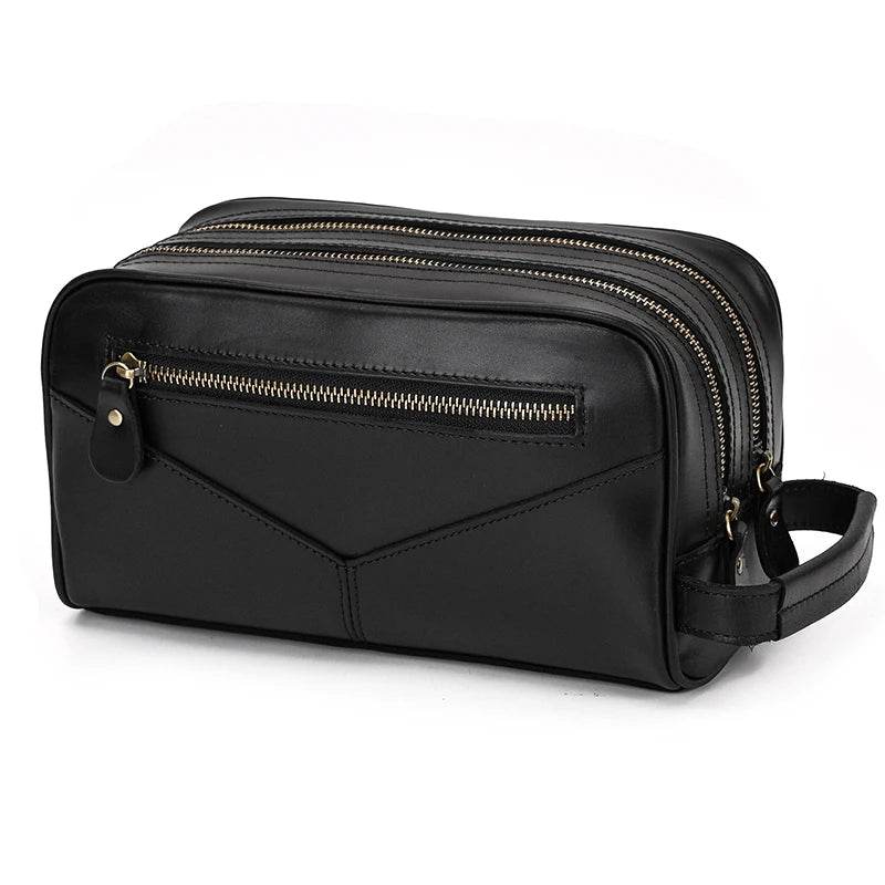 Thick Leather Clutch Bag for Men Genuine Leather Toiletry Kit Bag