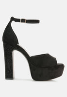 Beaty High Block Heeled Diamante Stud Sandals