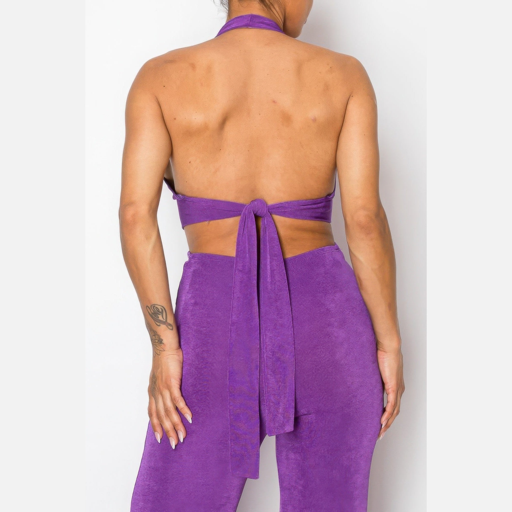 Add a pop of color and sophistication to your wardrobe with our Solid Slinky Wide Legs Jumpsuit in purple. Order now and enjoy a stylish blend of elegance and comfort!