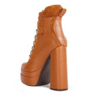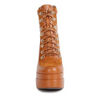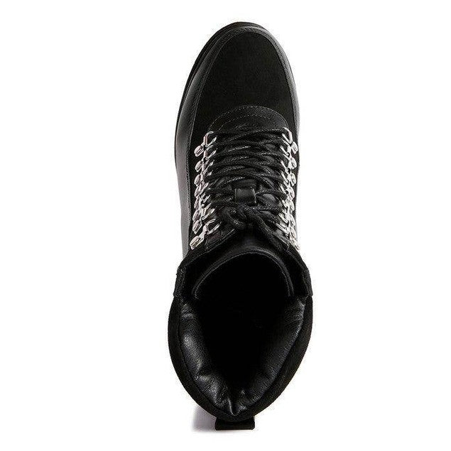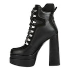 High Block Heeled suave Biker Boot in faux leather and microfiber panel is all edgy and chic! Comes with metallic eyelets which line up the top. The high chunky platform is height booster, reducing pressure on toes.