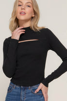 Long Sleeve Mock Neck Keyhole Rib Knit Top