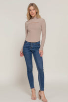 Upgrade your wardrobe with our Long Sleeve Mock Neck Keyhole Rib Knit Top. This stylish piece features a modern mock neck and a keyhole cut-out detail, crafted from a soft brushed rib knit for a perfect blend of sophistication and comfort.
