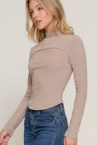 Learn more about our Long Sleeve Mock Neck Keyhole Rib Knit Top at VacationGrabs: